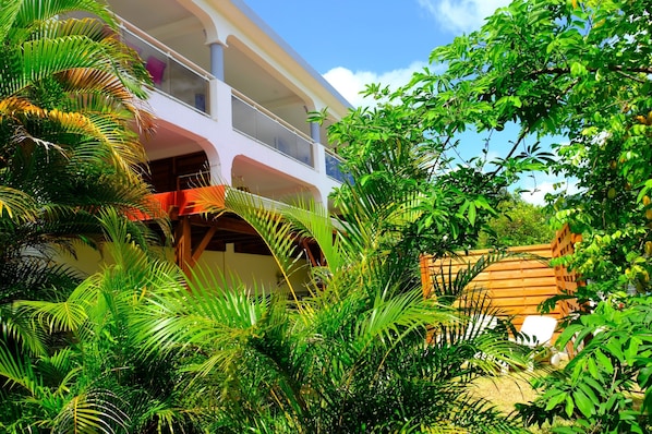 We propose you 6 very comfortable apartments distributed in a big house within a pretty tropical garden with swimming pool and parking.