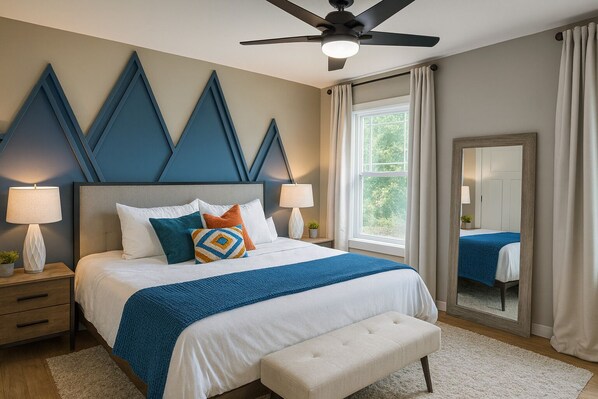 Escape to Mountain Haven, your modern mountain retreat in Asheville. Unwind with smart TVs, a gourmet kitchen with Keurig Duo coffee machine, and two full bathrooms boasting bathtubs and showers. Enjoy panoramic views from the private deck hot tub or front porch.