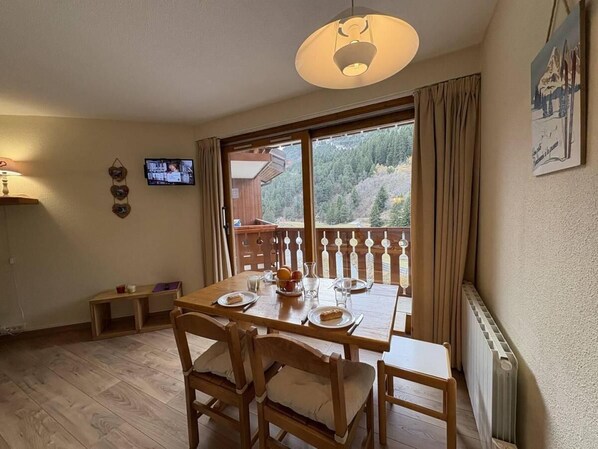 Dining - 90m from ski slopes, 3rd floor, view mountain, balcony, parking, tv, 27m², Méribel-Mottaret (Méribel - Les Allues)
