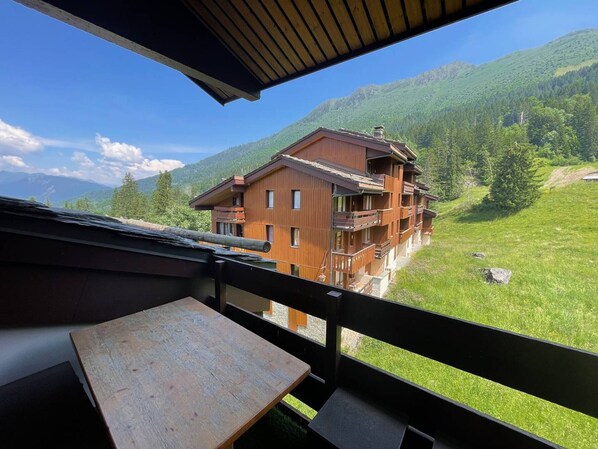Outdoor dining - Cozy studio for 4, balcony, 80m from slopes, pets allowed, parking (Valmorel)