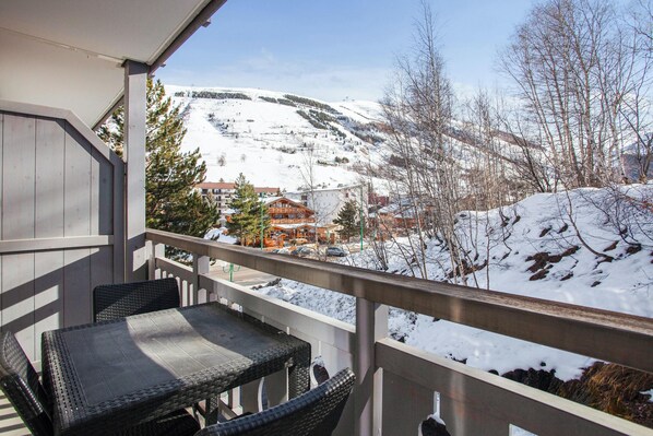 Outside, you can breathe in the fresh mountain air from your private balcony, ideal for relaxing after a day on the slopes. The apartment is located in a quiet part of Les Deux Alpes, allowing you to enjoy nature while having easy access to all the city's conveniences. A ski room is also available to keep your gear safe when you're not on the slopes.