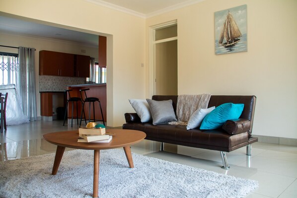 Escape to this quiet and safe gated complex, 15km from Kamuzu Int'l Airport. Within a short distance of the popular Carniwors Supermarket, this beautiful two-bedroomed apartment offers modern amenities like free wifi for up to 5 guests.