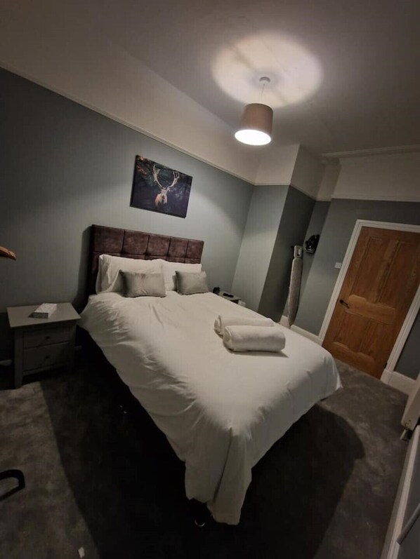 This is a detached spacious victorian property,with a 2 bedroom apartment to the first floor,2 double bedrooms both with 42inch smart tvs,1 king size bed and 2 singlebeds that can be put together to make a kingsize,shower room,kitchen diner with all the essentials to cook a meal,washing machine & dryer,iron & board if needed,living room with 50 inch smart tv 3 seater + 2 seater couch.