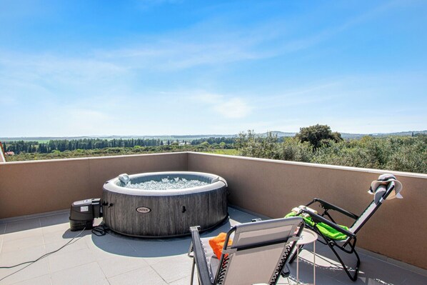 House Enard is located in the quiet village of Valtura, near Pula, and is the perfect choice for a family holiday for up to 6 people. Restaurants and shops are about 4.5 km away from the accommodation.On the upper terrace, there is a jacuzzi with sun loungers – perfect for enjoying the sun or relaxing in the evening. The jacuzzi lights up beautifully at night and creates a special atmosphere for romantic or peaceful moments under the stars.The ground floor includes three bedrooms with double beds, one of which has its own TV. The house has one bathroom.In the yard, there is an outdoor dining table, a charcoal grill, and children’s amenities – a slide and swings. Guests also have access to covered parking. Two parking spaces are available within the house’s yard, and there is additional space for more cars in front of the property. The entire unit is located on the ground floor, except for the jacuzzi, which is located on the upper terrace. Distances: post office 8000m, emergency room 8400m, discotheque 7000m, hotel swimming pool 10000m, other sports grounds 8000m, gas station 6400m, restaurant 4500m, shop 4500m, center 7000m, sea 7000m, beach 10000m, airport 1000m.