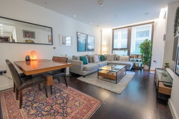 Smart TV, books, stereo - Serene, Spacious 2BR 2Bath Manhattan Style Flat | Gym | Balcony | 2 mins to Tube (London)