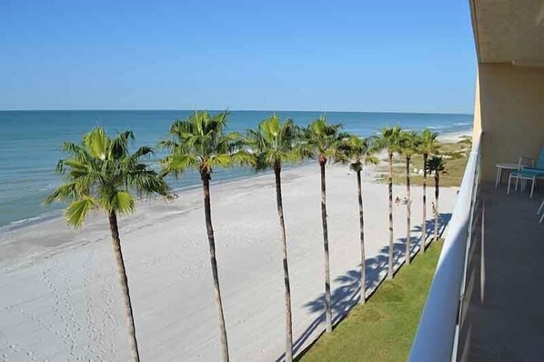 Enjoy breathtaking sunsets from this fifth floor, direct Gulf front condo with full Gulf views from the living and dining rooms and both bedrooms.