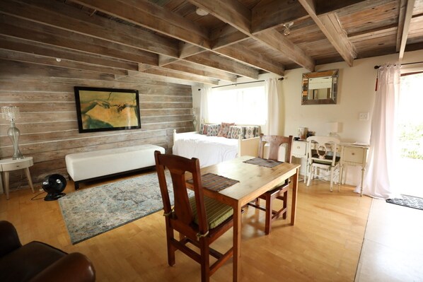 The cozy home studio is a perfect size for two people, snug for 4, but plenty of space to expand outside!