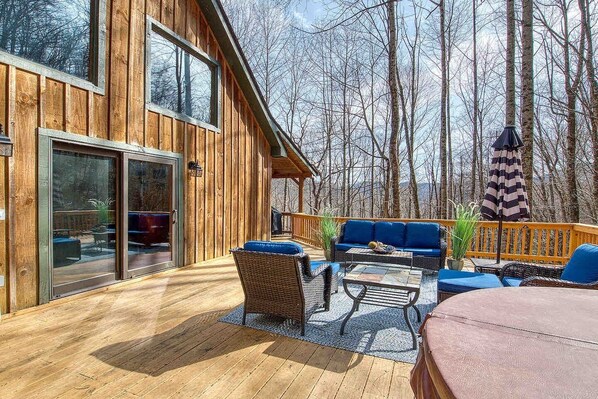 Terrace/patio - Cardinals on the Creek Cabin-Hot Tub, Pet-Friendly (Maggie Valley)