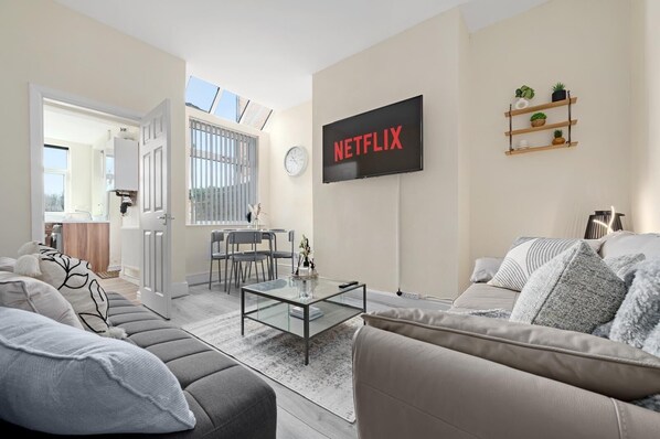 Smart TV - Luxury 4-Bedroom House • Free Parking • Near Etihad Stadium & Co-op Live (Manchester)