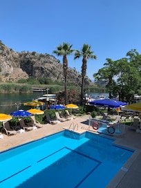 Travelers find tranquility at Dalyan Tezcan Hotel, enjoying a free breakfast buffet and international cuisine at two restaurants. Active guests love the cycling and bike rentals. Leisure options include an outdoor pool, children's pool, and library.