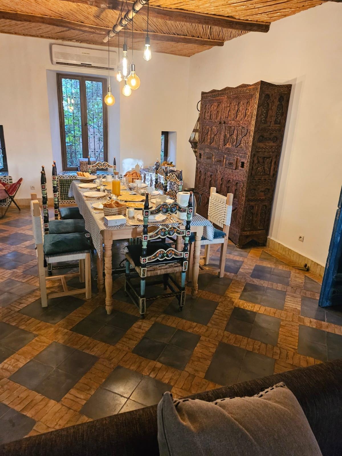 Very Spacious Villa, elegantly decorated traditionally. Gardens was very large and luscious. Children really enjoyed playing in them. The staff at the Villa were so helpful and the host was great at communicating and helped with transfers. Villa is 20 - 25 mins away from Medina so I would advise renting a car if possible but we used a recommended driver at a a set rate which was great.