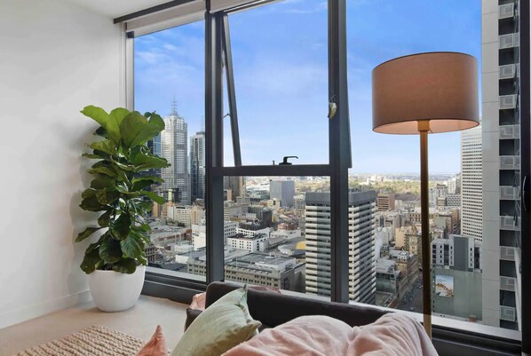 Perched 32 floors high, this apartment boasts brilliant city views of the Botanical Gardens and Arts Centre. With stylish furnishings and decor from En Gold, enjoy a generous living area with brand new appliances and free unlimited super-fast NBN WiFi internet.