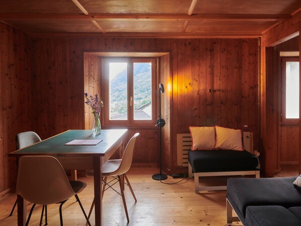 Mesocco is not a tourist resort and that is precisely what makes it so special. The house is in a quiet location, without traffic. Children can play outside undisturbed, run along the stream and explore the neighbourhood. The neighbourhood is friendly, helpful and at the same time pleasantly reserved. In the evening, it's worth taking a walk into the village and stopping off at one of the restaurants.