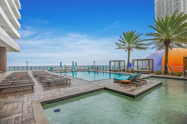Two infinity-edge ocean-view pools, including a rooftop pool with sweeping views of the Atlantic. Located on the 9th floor, featuring a sundeck and private cabanas. Jacuzzi also available.