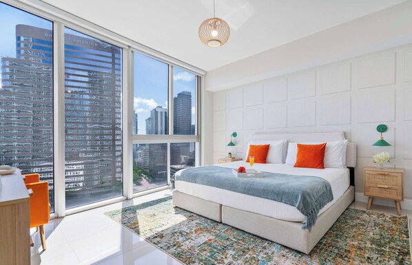 Located in the heart of Miami, this ocean-view apartment offers a luxurious retreat with a large balcony and unobstructed views of Biscayne Bay. With high-speed internet, multiple Smart TVs, and an extra-large fitness center with wet and dry saunas, you'll have everything you need to unwind.
