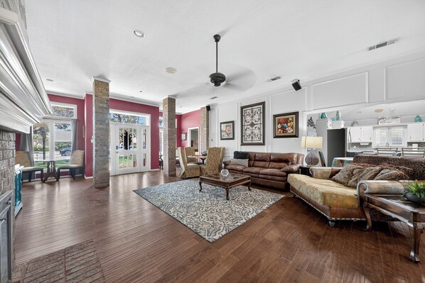 Welcome to Right at Home this house is located next door to Santiago Dreams. Rent separately or both for large groups. Inside you will find an open spacious floor plan with dining seating for 22. This house is set up for larger groups or combined families. There are two bedrooms with queen beds and two bedrooms with multiple beds. There are two living areas and a chef's kitchen fully stocked to prepare meals. Outside you will find multiple seating areas for 14. There's plenty of space so that everyone feels comfortable and three full bathrooms so guests can get ready quickly.. Come make yourself Right at Home in Midland.