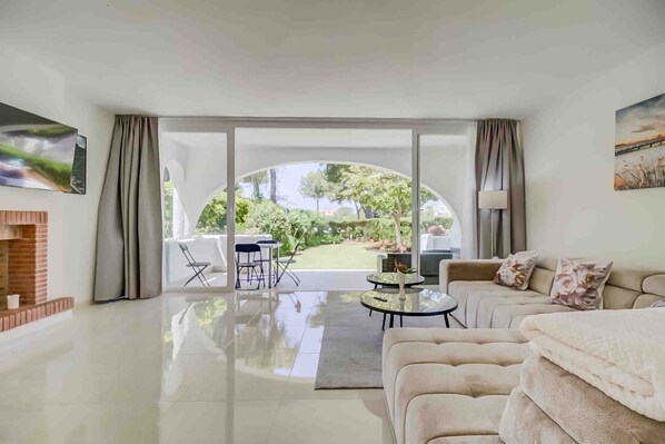 TV, fireplace - Holiday Home 'Miraflores Resort Luxury' with Sea View, Wi-Fi and Air Conditioning (Mijas)