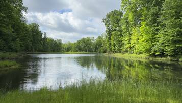 Beautiful, cozy, lakeside wooded getaway in serene surroundings.