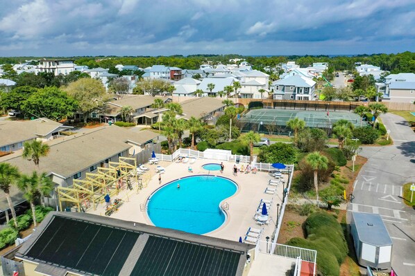 This villa is nestled in a community type atmosphere where your neighbors can stop by and sit with you on the porch swing. There is a private side yard with a deck for sunbathing and a covered patio to enjoy your summer meals outdoors. The master bedroom features a king bed, while one of the unique features includes the trundle bed hidden away underneath the day bed in the second bedroom. This condo also comes equipped with private washer and dryer in unit. Whether taking in quick tennis match in the morning or a quick round of golf in the afternoon - you will feel like you are coming home from you day out playing in the sun, when you stay in our Tennis Villa Neighborhood.