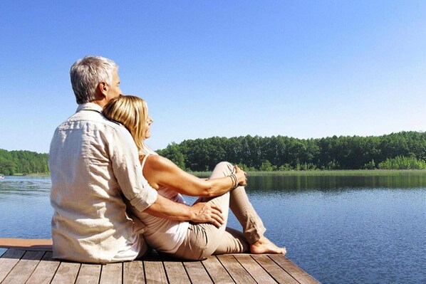 Lakefront holiday home with kitchen and patio