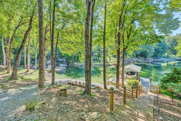 Whether you choose to relax on the back deck or under the shade of the many trees in the backyard, this property provides the perfect ambiance for your stay. The deep water at the end of the dock is perfect for fishing, and boat access is incredibly convenient. There are 2 kayaks for your use to explore the lake and area. As the sun sets, gather around the fire pit to create unforgettable memories. Roast marshmallows and make s`mores while sharing stories of the day.