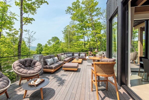 Terrace/patio - NEW! Lagom Evergreen | 7 Bedrooms | Indoor Pool | Tremblant Living (Mont-Tremblant)