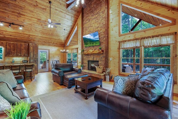 Nestled 20 minutes from downtown Blue Ridge, Sun Rays Mountain Vista offers a home away from home. Unwind in the hot tub or cozy up by the lounge with games to enjoy. A fully-furnished kitchen and spacious living room make this cabin perfect for relaxation.