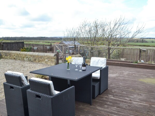 Shower Room: Cubicle Shower, Toilet. Oil central heating, electricity, bed linen, towels and Wi-Fi included. Travel cot and highchair available on request. . Decking with sitting-out area and garden furniture. Grounds (shared with owners). Stabling for horses. Private parking for 1 car. No smoking.. Ideal for a couple or small family, The Cockles is set in a pretty countryside location yet only a few minutes’ drive from the historic market town of Morpeth. Detached and set on the owners’ smallholding with horses, the property has a lovely wrap-around style decked area to maximise the sun after you have been out exploring all day. With many bridle paths straight from the door, it is also ideal if you want to walk.