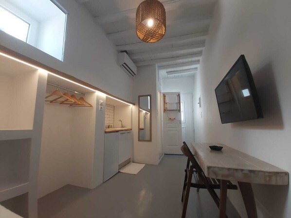 At the heart of Mykonos town, this cozy apartment offers a tranquil retreat. Stroll to the vibrant markets and restaurants in mere seconds or unwind on Santa Anna beach just a minute's walk from your doorstep.