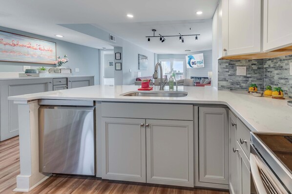 Ocean views from the balcony as you savor your morning coffee or evening cocktails. Revel in the convenience of your own kitchen, complete with a full-sized fridge, microwave, and HDTVs.