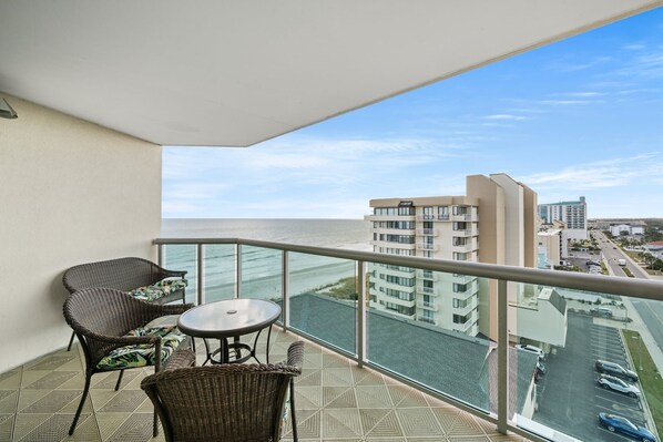 This lovely 2-bedroom, 2-bathroom condo can accommodate up to 4 people. Tastefully furnished, it has king-sized beds in both the bedrooms, a sleeper sofa in the living room, and Jacuzzi tubs in the bathrooms. The tiled living area features a spacious corner suite with a large sectional and sliding doors out to the balcony. There is an eating area with a table and chairs, and bar stools at the kitchen counter. There is also a table and chairs on the balcony for alfresco meals and sundowners. Although set back from the beach, the unit has lovely ocean views from the balcony. Blue Water Keyes is one of the newest resorts in North Myrtle Beach. Escape the ordinary and experience tropical luxuries found in the Keyes with amenities that include a large outdoor pool and lazy river, kiddie pool, hot tub, indoor pool, sundeck, and fitness center, all just footsteps from the ocean. Blue Water Keyes also offers a courtyard on the sixth floor that offers scenic views of historic Ocean Boulevard. Located in the Crescent Beach section of North Myrtle Beach, Blue Water Keyes is within minutes from all the action on Main Street to the north, and renowned shopping and dining at Barefoot Landing to the south. The beach at Blue Water Keyes is very close to oceanfront parasailing and banana boat rides, something exclusive to the Crescent Beach area.