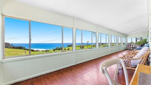 Nestled near the beautiful Narooma Golf Course, this Large Beach House offers a lovely sunny enclosed verandah to take in sensational views of the ocean or watch whales migrate seasonally. With WiFi, electric heating, and a fully equipped kitchen with dishwasher you are set for your perfect holiday getaway. Stroll to the golf club, children's park or shops.