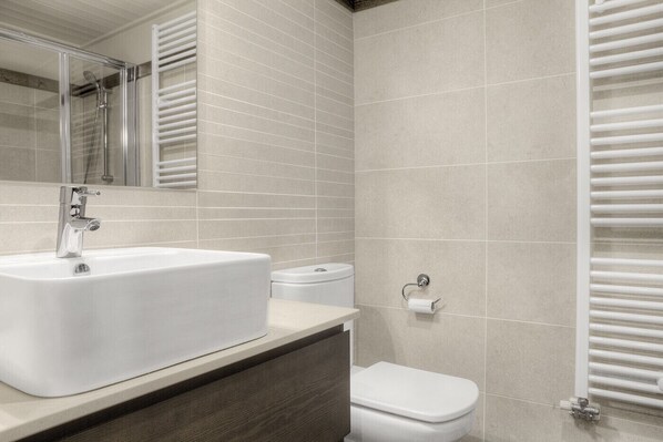 For each bathroom: a roll of toilet paper, a hand soap, a shower gel and a shampoo in single-dose format.