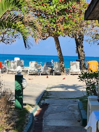 Located about 50 yards from the ocean, the beach area has plenty of room. The grounds are maintained daily and look great, beautiful scenery. People working there are friendly and helpful, and the pool is great also. The area is overall quiet, safe, and plenty of food, drink, music within walking distance on the beach or the road. It’s a great place to relax or explore the beach and all it offers. I’ll be back 🇯🇲