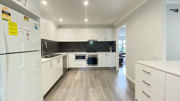 Fridge, microwave, oven, stovetop - Pirralea Pde 9 - Affordable family fun at Nelson Bay, with a pool and walking distance to the beach (Nelson Bay)
