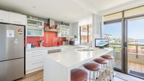 Fridge, microwave, oven, stovetop - The Commodore, 23,9-11 Donald Street - Delightful unit with gorgeous water views, air con and wi-fi (Nelson Bay)
