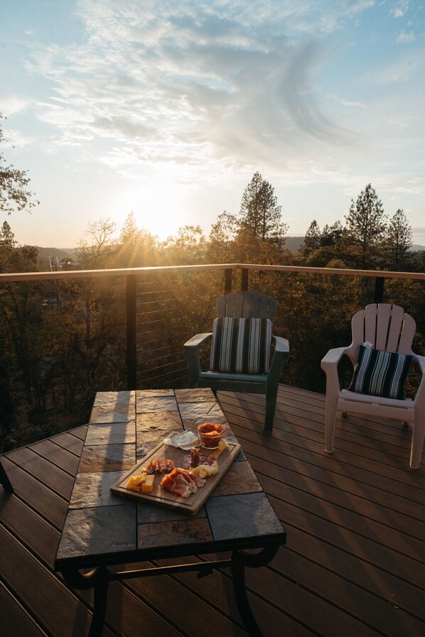 This private retreat blends adventure, comfort, and charm—just 10 min. from downtown Nevada City. Sleeps up to 10, with a hot tub under the stars, backup battery system, and plenty of space for families to unwind. Ride straight out to mountain bike trails that wind toward the Yuba River, perfect for swimming and exploration. After your ride, explore Nevada City’s Victorian streets, Gold Rush architecture, boutiques, cafés, and live music—where culture meets nature minutes away.