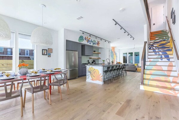 We chose this house because all ten of us could fit around the table and there was plenty of space to gather - though we didn't know it when we booked, this may have been our last family gathering with my mom. Her greatest joy is conversation over meals, and we gave her that. For my dad, this was a bucket list trip to the National WWII museum, and for the younger set, the French Quarter was high on the list. This house was conveniently located to everything we wanted to do, and the property managers were available for any issue we had (they even had the patience to show my 80-year-old dad how to use the "newfangled" TV remote)! We loved the murals, and though the neighborhood is in the midst of regeneration, we felt safe and thoroughly enjoyed our stay. The photos of the outdoor space did not do it justice - and even though it was January, a couple of us were brave enough to try out the heated pool. It was lovely, with plenty of towels and great laundry facilities. Highly recommend!