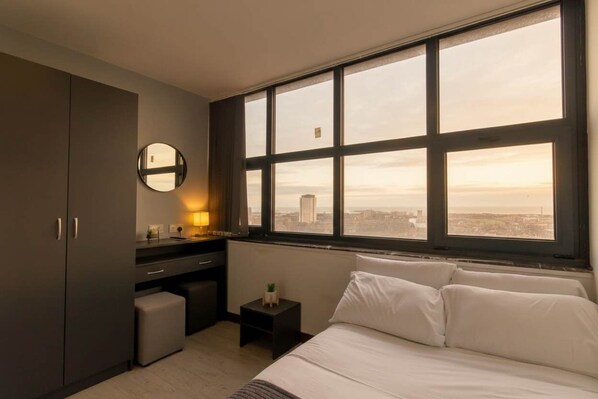A cosy and bright studio apartment located in the heart of Sunderland city centre, featuring lovely sea views. Perfectly positioned for convenient access to the city’s attractions, this affordable accommodation offers a practical kitchenette, a modern bathroom, and all the essential amenities needed for a comfortable stay in a central location.