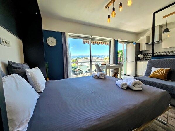 Panoramic Sea View Studio in Cagnes-sur-Mer, AC, Beach Access, 24/7 Check-In&Out