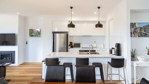 Located in a prestige neighbourhood, this brand-new double-storey holiday home near Normanville beach offers relaxing and inviting décor to unwind with all the creature comforts you could need. Unwind on any of the entertaining areas, including an alfresco dining space or by the fire pit. The residence sleeps up to 10 guests across 4 bedrooms and features modern stainless-steel appliances in its fully equipped kitchen.