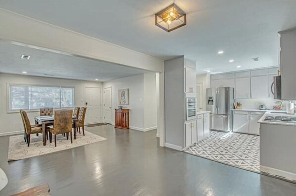 The layout of the house was perfect for us. Large family room, dining room and kitchen all with open floor plan. Some deferred maintenance, but did not detract from our stay. We really appreciated the Keurig coffee and gas cook top.