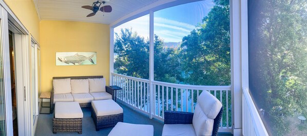 Screened in Porch : Great for enjoying coffee, a glass of wine, or having an evening meal. Overlooks a beautiful pond.