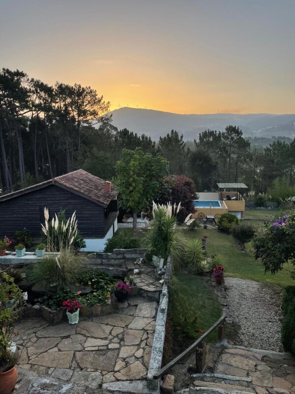 You have a good-sized private pool with views, numerous terraces and shaded seating areas, a small private barbecue in the old Galician granary, and a larger barbecue area near the pool, as well as spacious recreation areas throughout the extensive grounds.