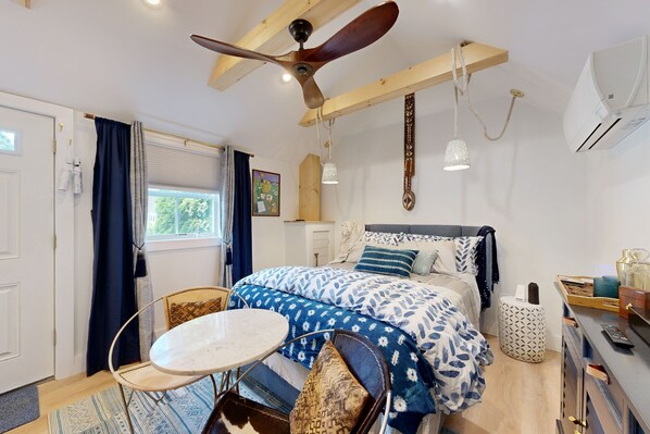 The amenities at this vacation home are designed to enhance your stay and provide all the comforts of home. From a washer/dryer and gas fireplace to a fully equipped kitchen with modern appliances, you'll have everything you need for a relaxing getaway. Enjoy the outdoor firepit, patio, and gas grill for memorable evenings under the stars. The property also includes Sankofa Studio, a fabulous studio apartment for additional space and privacy.