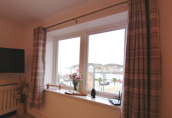 This apartment is on the 2nd floor of the bilding, fully fitted out to a high standard with all conveniences you would expect, from its spacious living and panoramic window view's over Oban Bay and up to McCraigs tower in the background - you could just sit there and watch the world go by all day. With one double bedroom with en-suite facilities and one twin room with separate family bathroom. The kitchen is fully equipped with everything you need including a dishwasher, microwave, washing machine, a fridge/freezer and a stovetop.