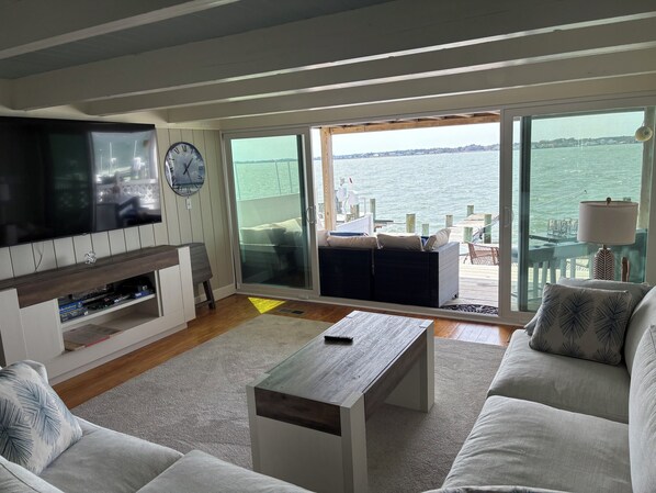 Keep your family or friends together in this one of a kind, newly updated paradise on the bay. Relax with the whole family on the peaceful covered or open decks. Brew your own morning coffee in one of 2 coffee bars, one on the main floor and one in the master suite overlooking the bay. the house includes 3 master suites with bathrooms attached. Fourth bedroom with bunks and trundle.All bedrooms come complete with large screen TV's. Sleeps 12-14 comfortably. Deck games and fire pit outside your door. Fishing and crabbing is readily available off the dock. Large boat dock available for a fee. We hope you can make your family memories come true in our paradise.