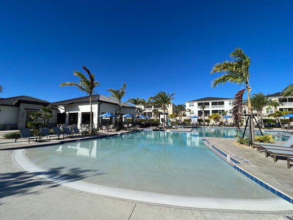 Rating Details: The property manager was very helpful. The vacation rental was very clean. I was very happy with the location. I was very satisfied with the condition of the vacation rental. Overall, I recommend this vacation rental. Reviewer Comments: Large house with more then enough room for 2 families. Close to all retail box stores to stock up on necessities. Clubhouse pool and resort was a blast for the kids. Backyard pool and hot tub was amazing for the adults when the kids went to bed. Garage is stocked with enough toys for our toddlers to keep busy playing outside in the driveway. We had a great stay here.