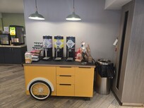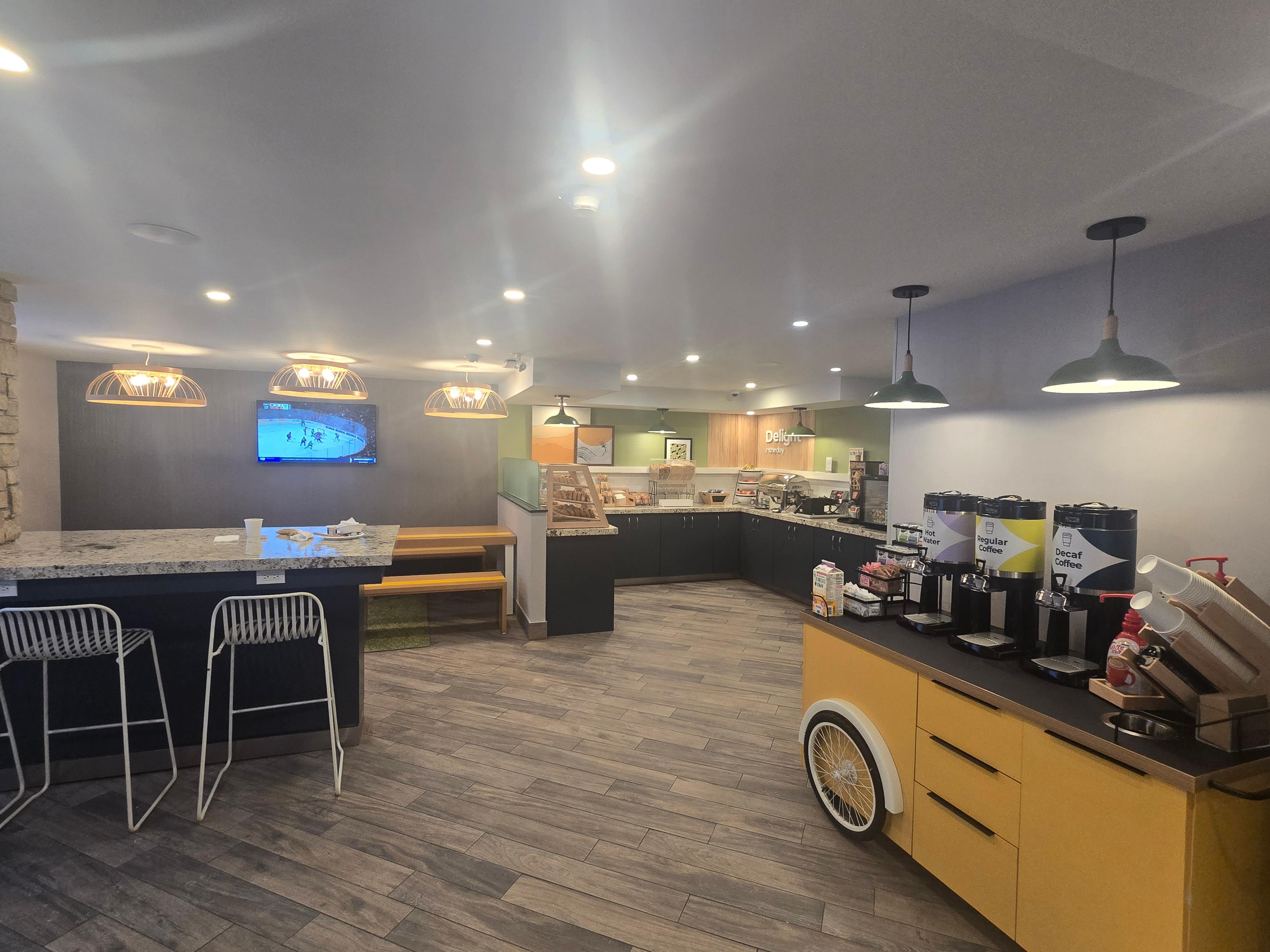 Travelers start their day with a warm breakfast buffet at this Oshawa hotel, then grab a fresh coffee from the lobby while planning their adventures