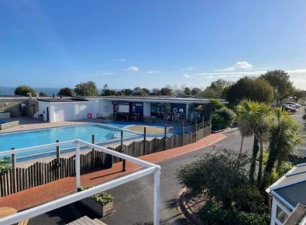 Communal outdoor/indoor swimming pool available for guests from the park